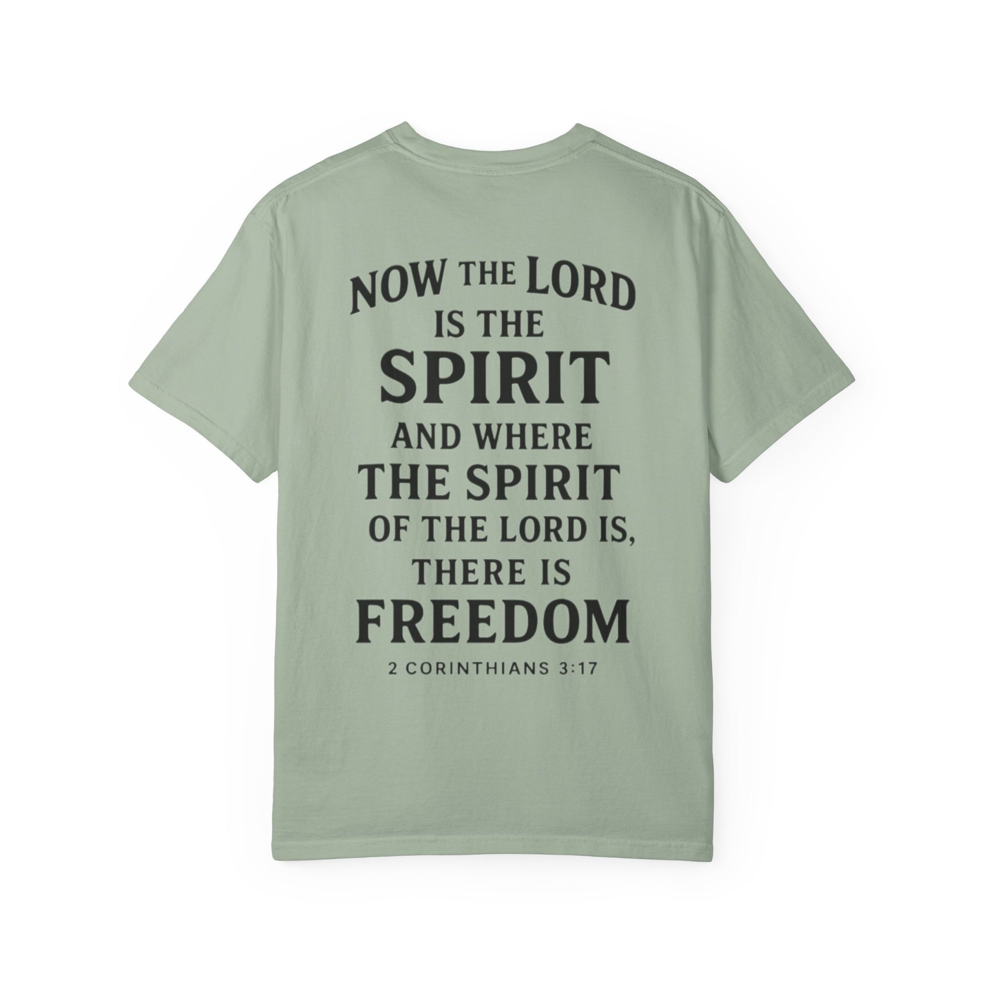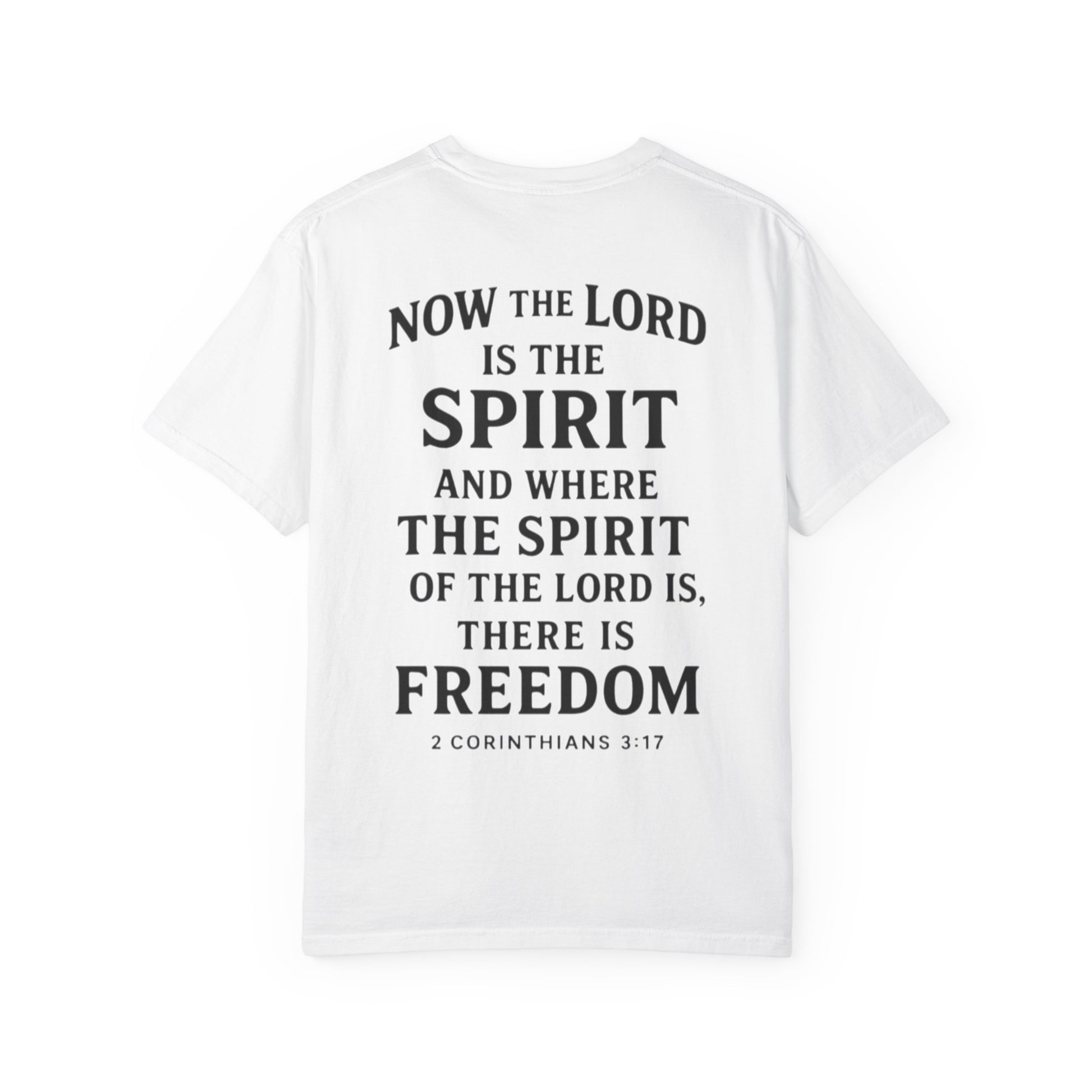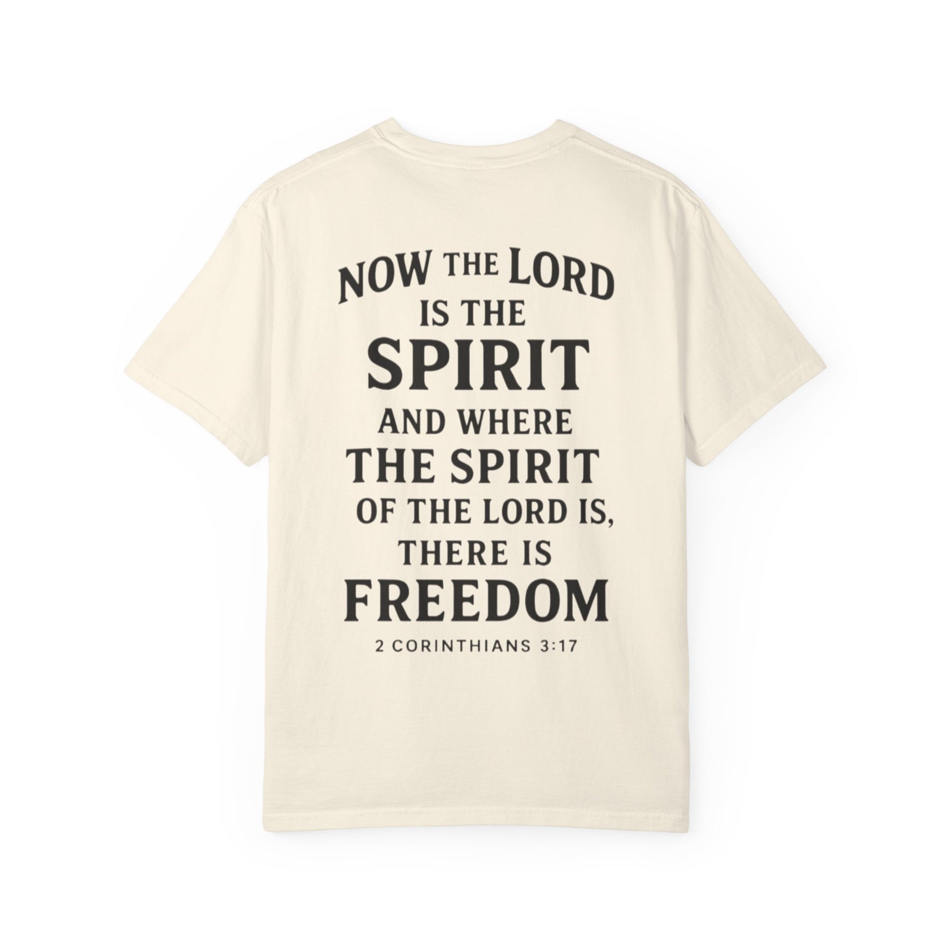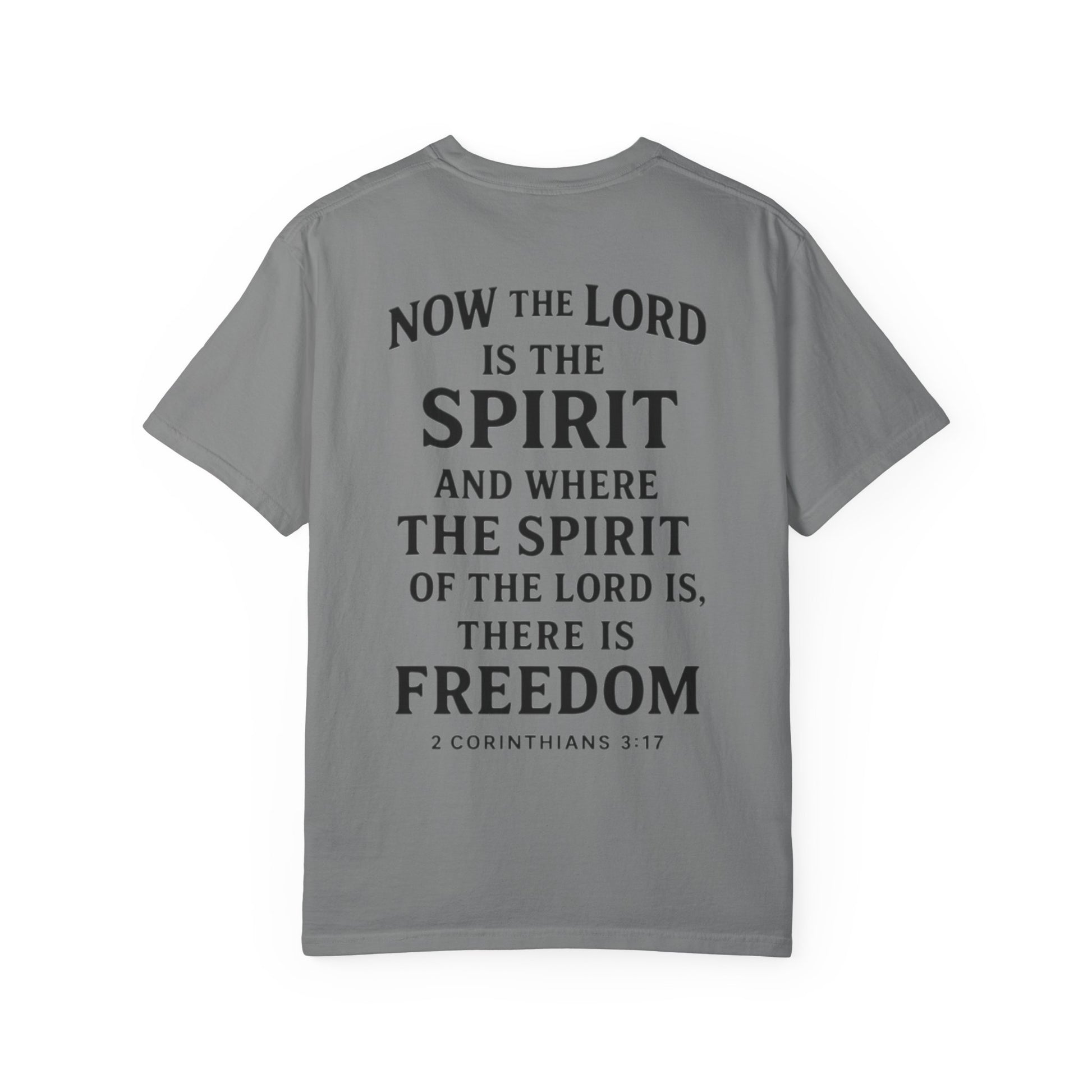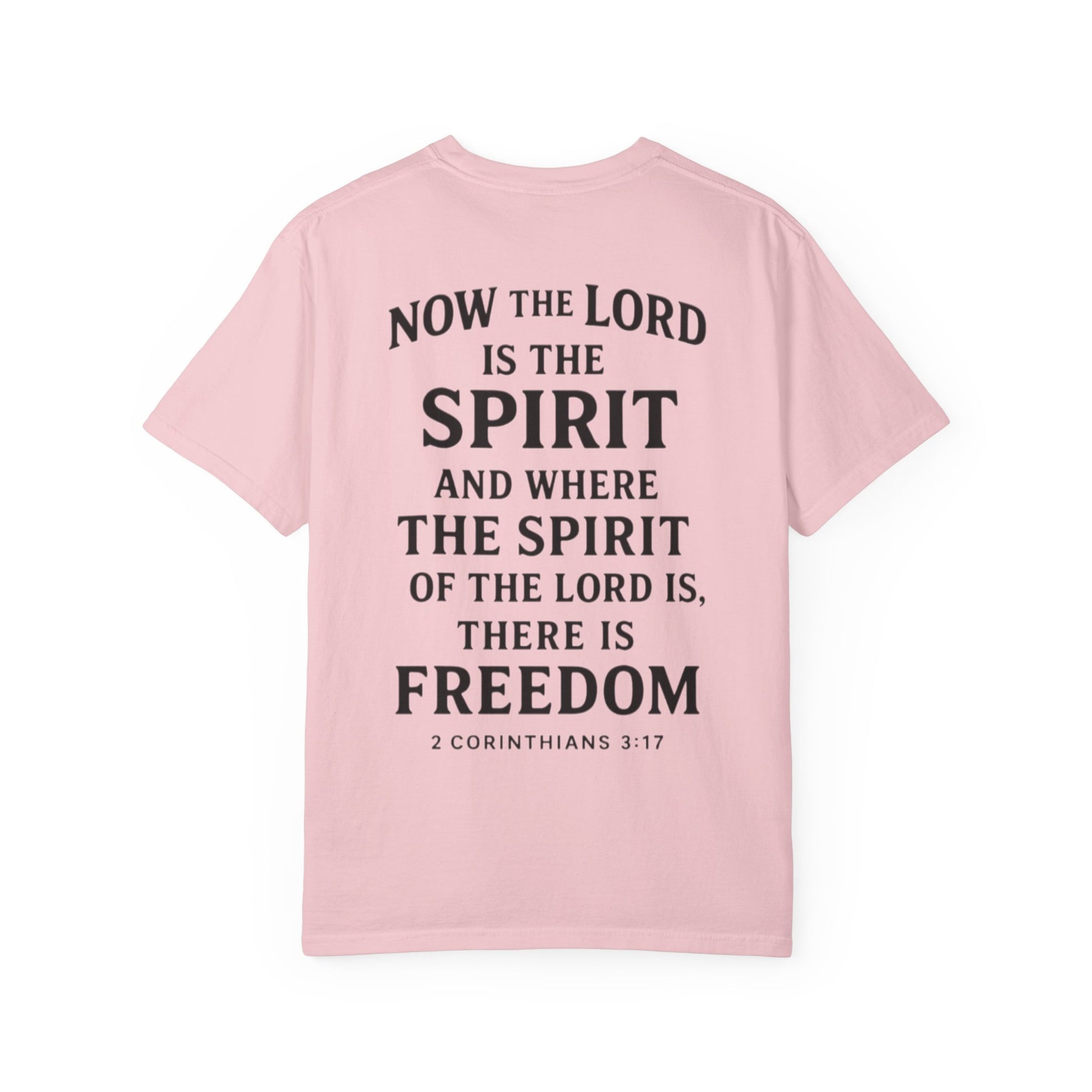 This empowering design is inspired by the powerful words of 2 Corinthians 3:17, reminding you that true freedom is found in the presence of God's Spirit. The bold, faith-driven statement on this shirt is perfect for sharing the message of grace, liberation, and transformation wherever you go.